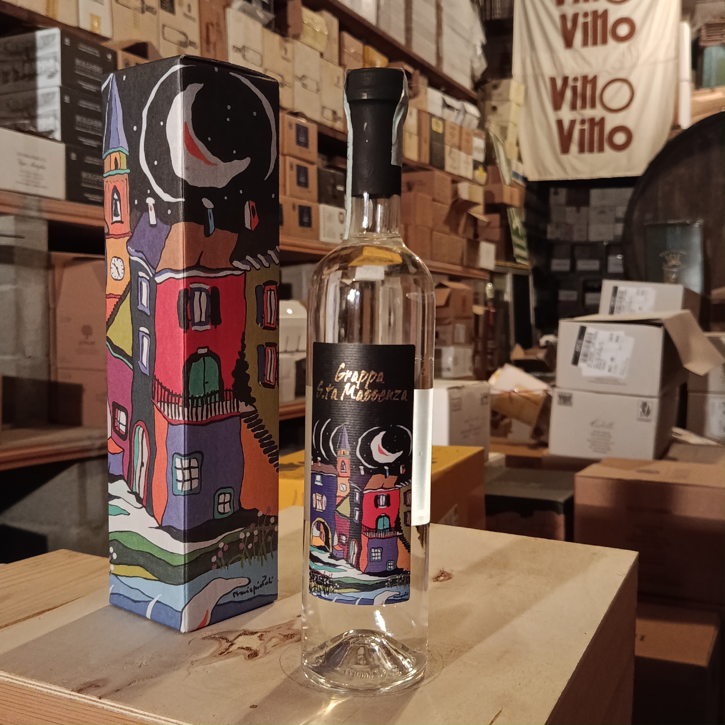 Grappa plurivitigno ottenuta dalla distillazione di vinacce di uva Schiava e Nosiola, le 2 uve tipiche di Santa Massenza, con alambicco in rame discontinuo a bagnomaria. La grappa ottenuta riposa per un breve periodo, poi viene diluita e infine filtrata e imbottigliata. Gradazione alcolica di 41%Vol. e capacita 0.50l.